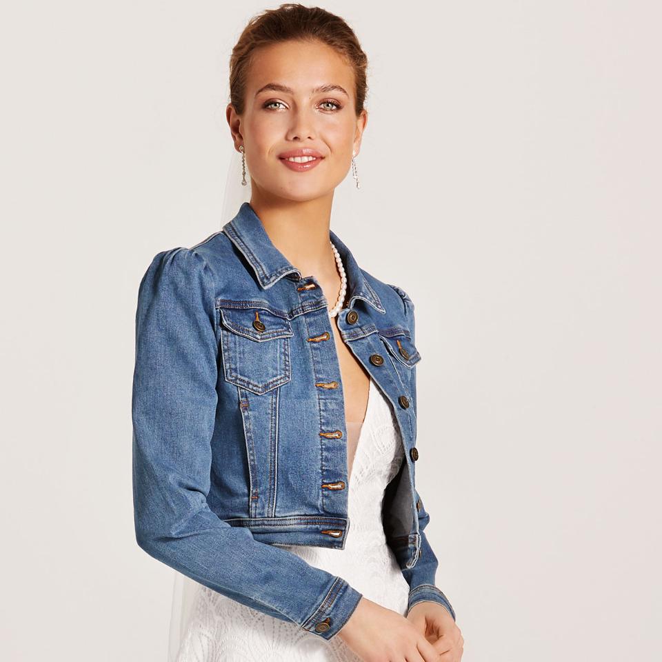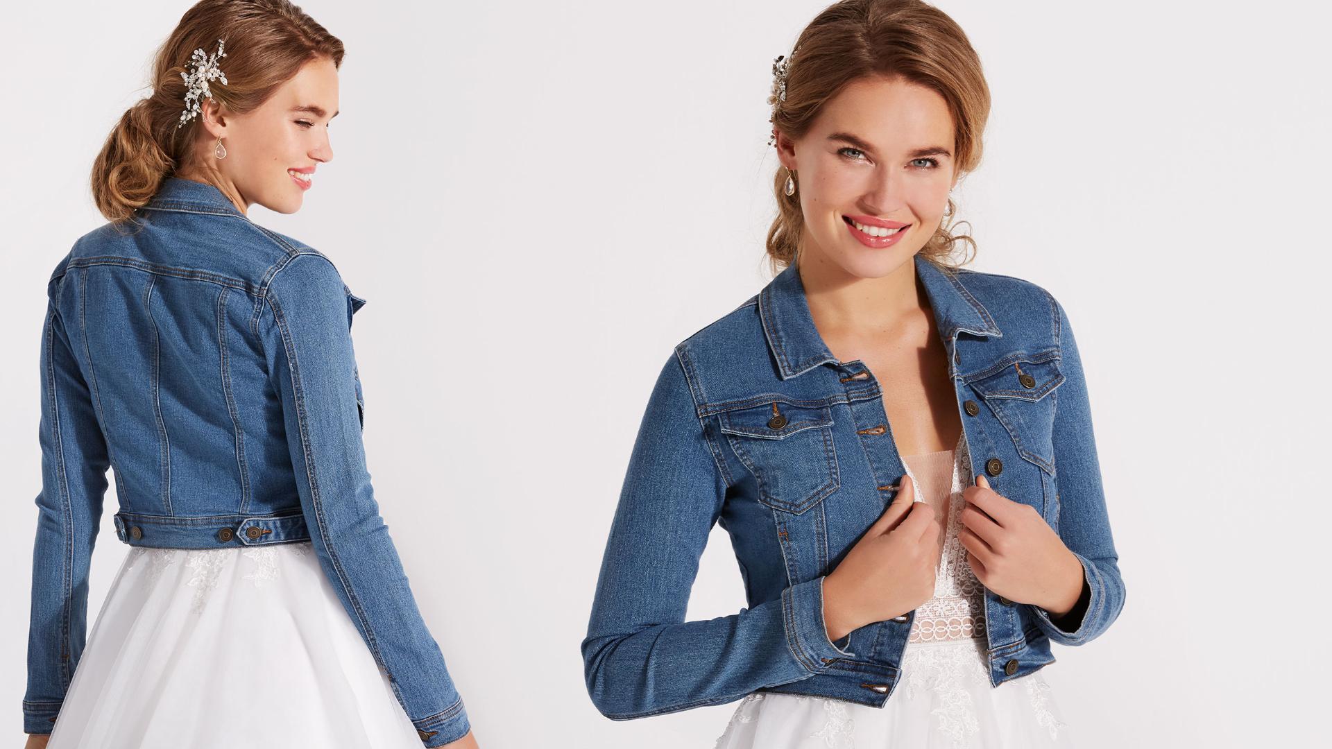 Sie suchen nach einem IT-Piece, das Sie auch nach der Hochzeit im Alltag tragen können? Bingo! Unsere Denim-Jacke mit Puffärmeln sieht nicht nur super stylisch aus, sondern lässt sich auch wunderbar zu Brautkleidern mit Ärmeln kombinieren.