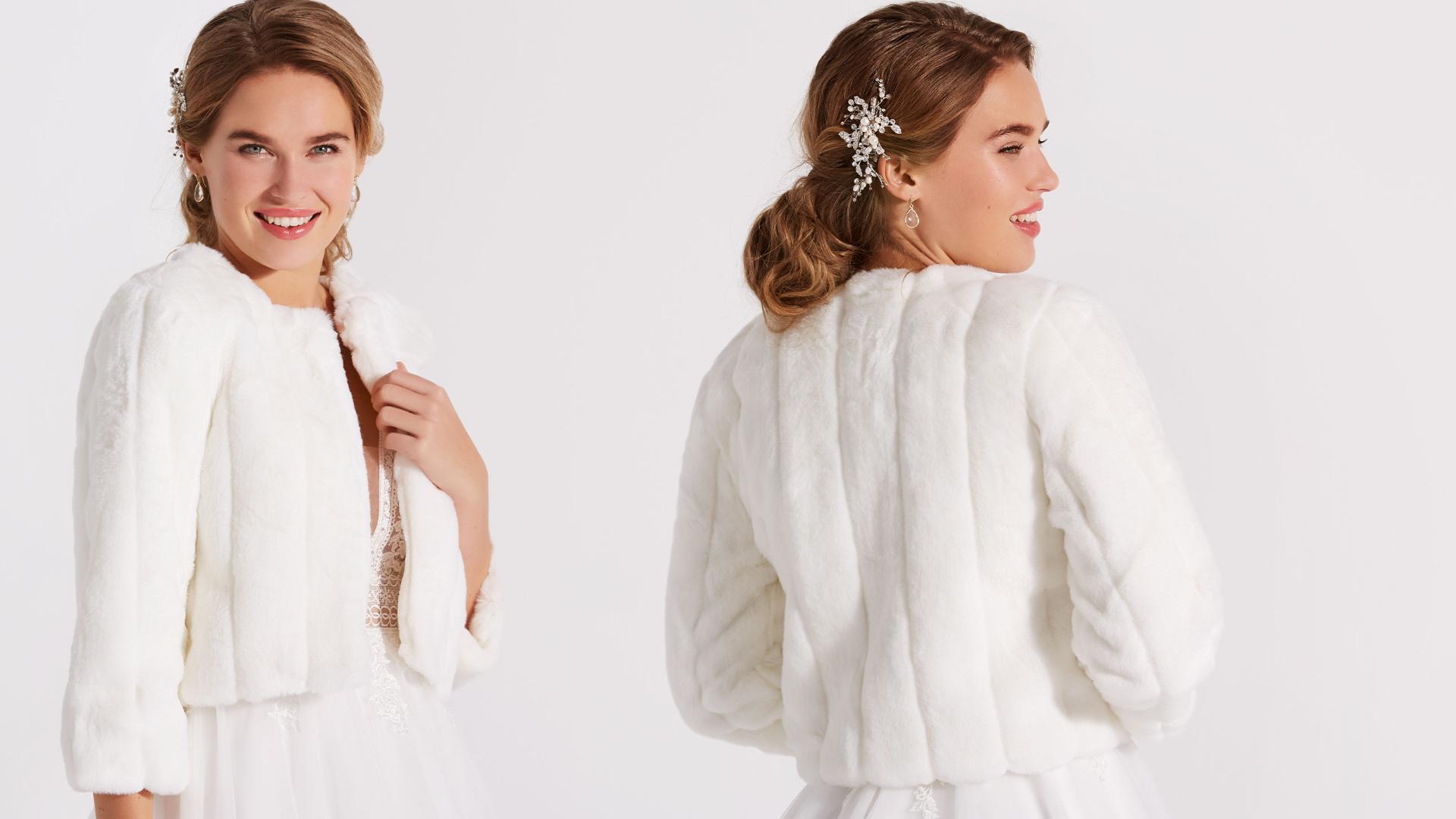 Kurze Braut-Jacke aus Fake-Fur in Nerzoptik