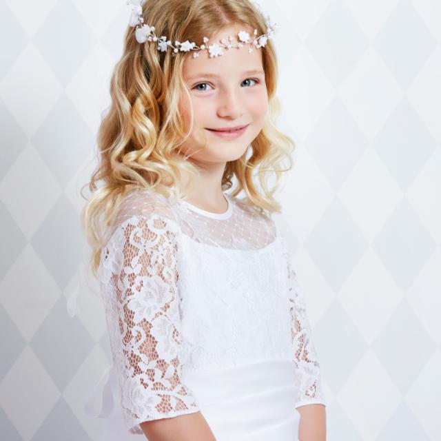 Zart und fein wie Frühlingsblumen sind die Kommunionkleider im Boho-Stil. Sie bezaubern mit schwungvollen Volantröcken und verspielten Details und lassen romantische Mädchenherzen erblühen.